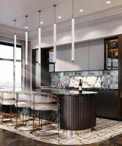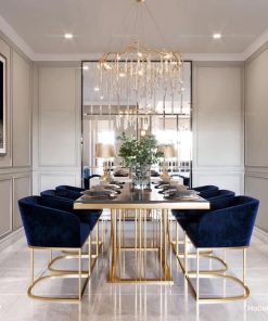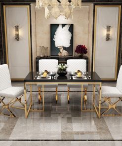 - Chân bàn được làm từ inox mạ vàng bóng tạo độ sang trọng cũng như sự tinh tế, hiện đại cho bàn ăn nói riêng cũng như không gian bếp nói chung.