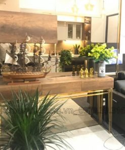 - Bên cạnh việc trang trí, mẫu bàn console inox hiện đại này còn kết hợp với những đồ nội thất khác như bàn trà inox mạ vàng, kệ tivi inox mạ vàng… để tạo nên một không gian nội thất lý tưởng và thời thượng