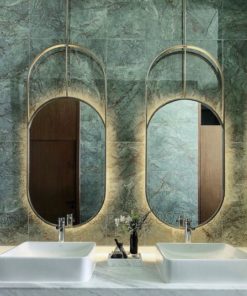 Phối vật liệu: khung viền inox mạ pvd kết hợp kính bỉ